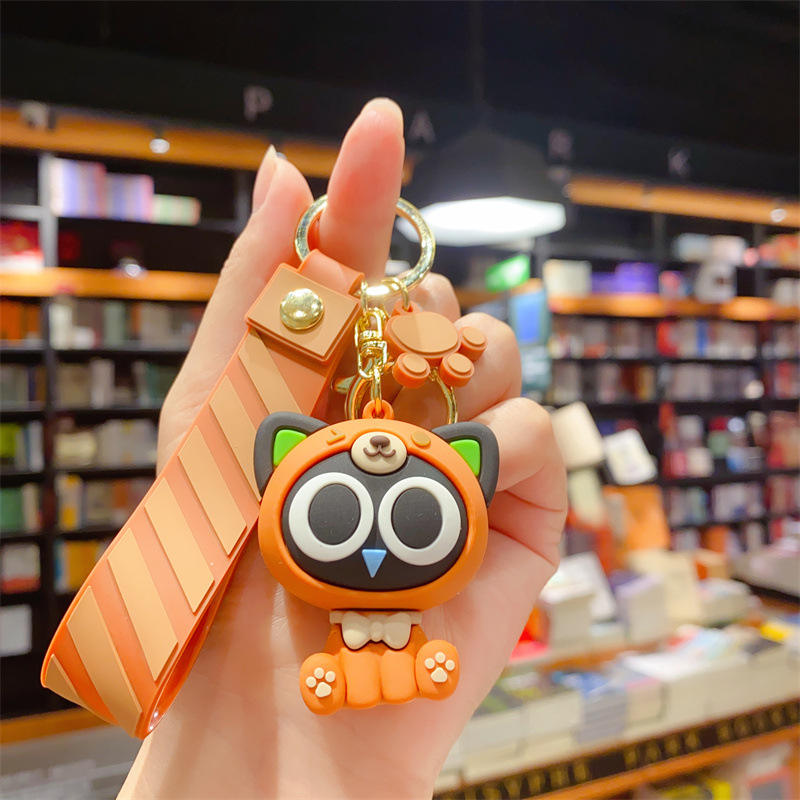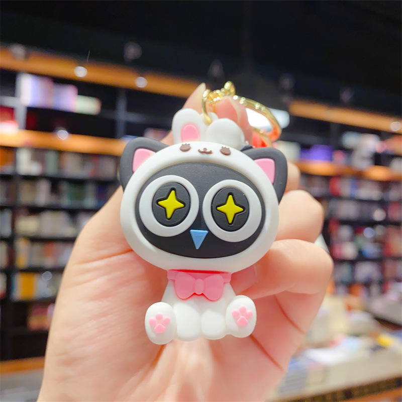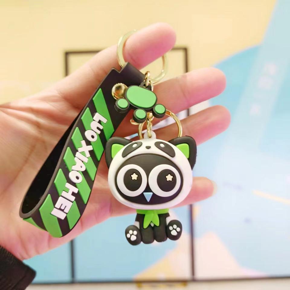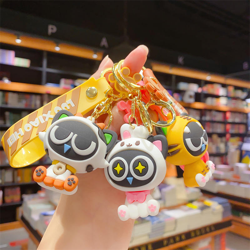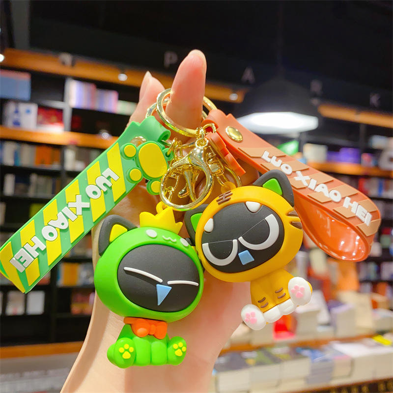 พวงกุญแจการ์ตูนขนาดเล็กน่ารักอนิเมะลูโอพวงกุญแจสัตว์สีดำขนาดเล็กรูปแมวน่ารักพีวีซีตุ๊กตาพวงกุญแจกระเป๋านักเรียนจี้ห้อยกระเป๋า
