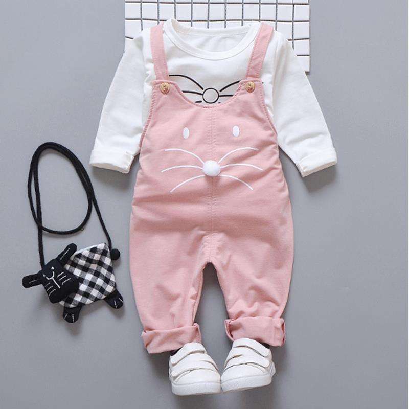 ชุดเสื้อผ้าเด็กผู้หญิงลายการ์ตูนหนู 2 ชิ้น สำหรับเด็กแรกเกิด-4 ปี ชุดเสื้อแขนยาวผ้าฝ้าย