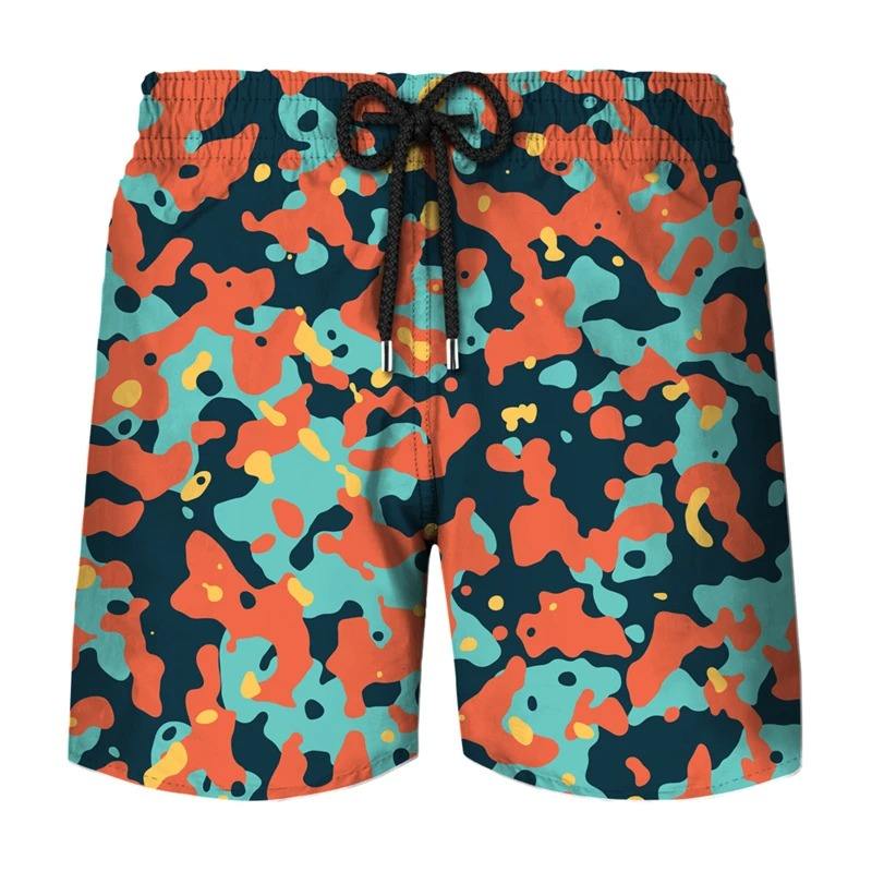 กางเกงขาสั้นชายหาดลายการ์ตูนสีสันสดใส กางเกงว่ายน้ำชาย กางเกงเซิร์ฟบอร์ดฤดูร้อน ระบายอากาศได้ดี แห้งเร็ว เอวกลาง มีเชือกผูก