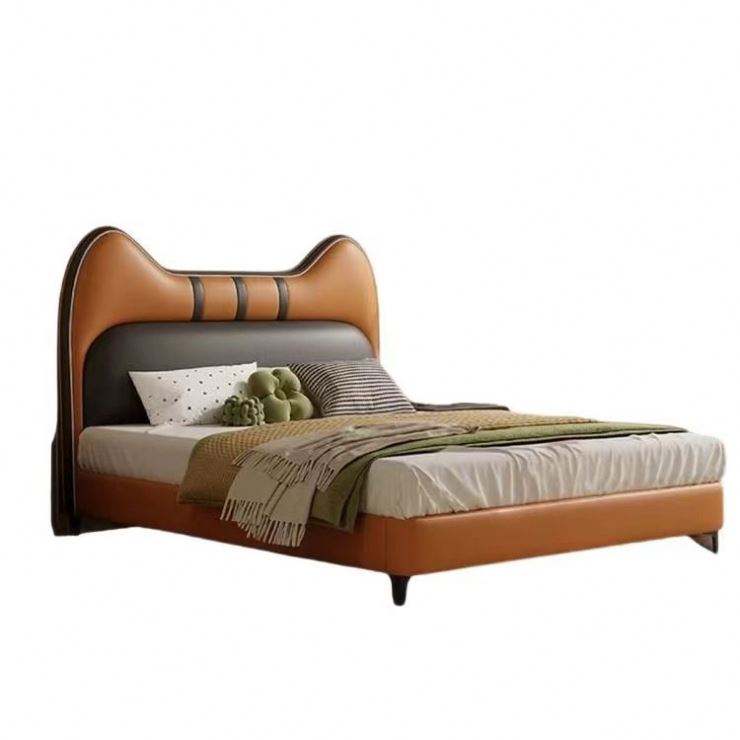 Cartoon Orange Cat Boys Girls Princess Bed Comfortable Modern Full Wood Frame Children's Bedroom Furniture