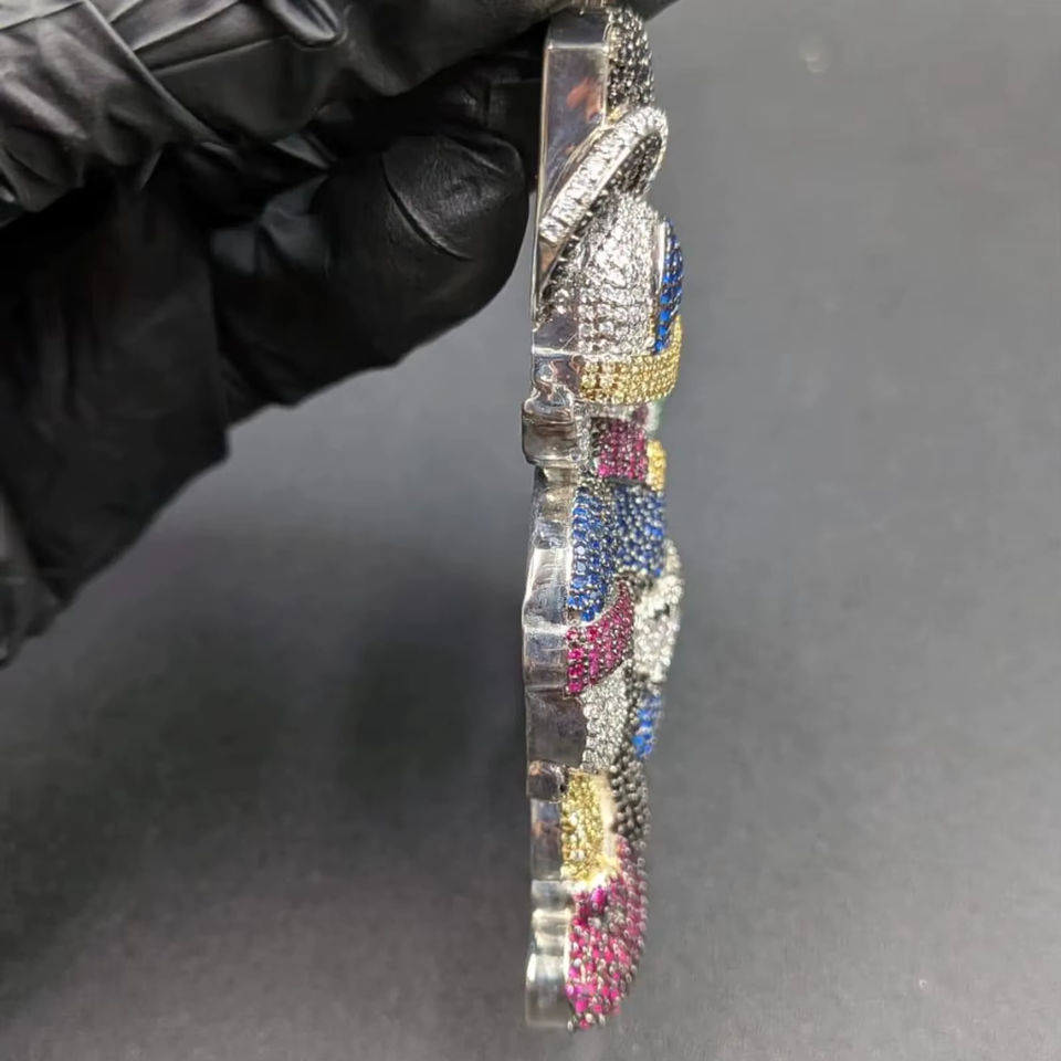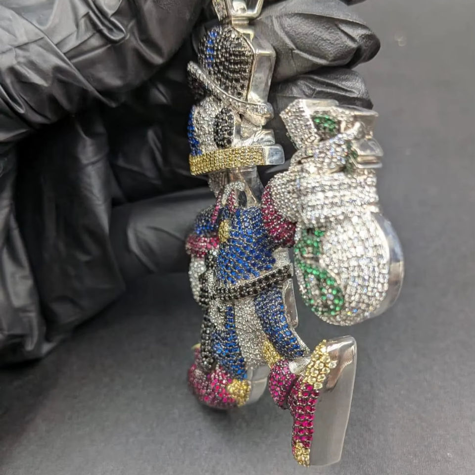 จี้การ์ตูนเพชร VVS หลากสี รูปตัวละครขี่ม้า สร้อยคอแฟชั่นฮิปฮอป เครื่องประดับสำหรับผู้หญิงผู้ชาย ปรับแต่งได้ ทำจากเงินแท้ IGI