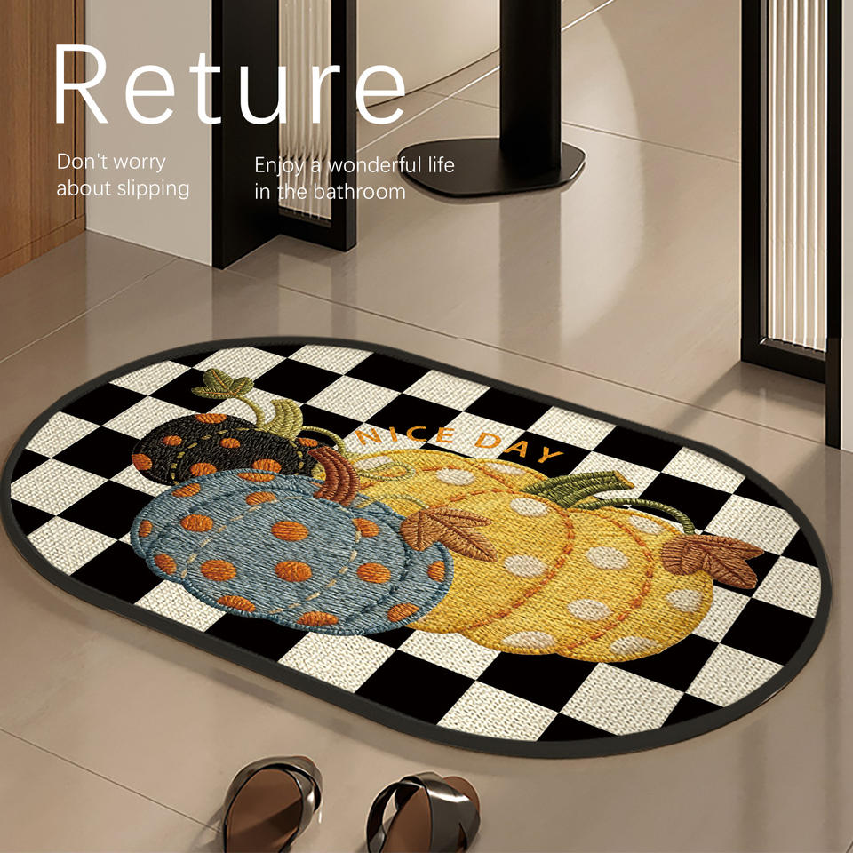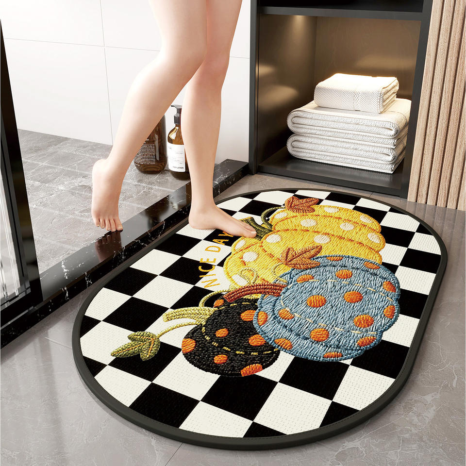 พรมเช็ดเท้ารูปฟักทองลายการ์ตูน รูปวงรี ผ้าลินินเทียม ซึมซับน้ำได้ดี กันลื่น สำหรับห้องน้ำ