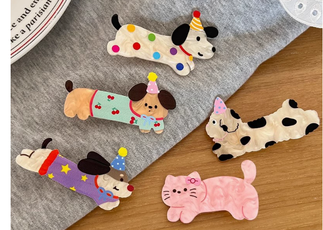 กิ๊บติดผมอะคริลิคการ์ตูนรูปสุนัขและแมวสำหรับเด็กผู้หญิง - กิ๊บติดผมด้านข้างน่ารัก อุปกรณ์ตกแต่งผมอเนกประสงค์