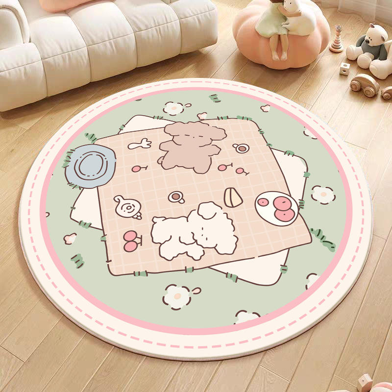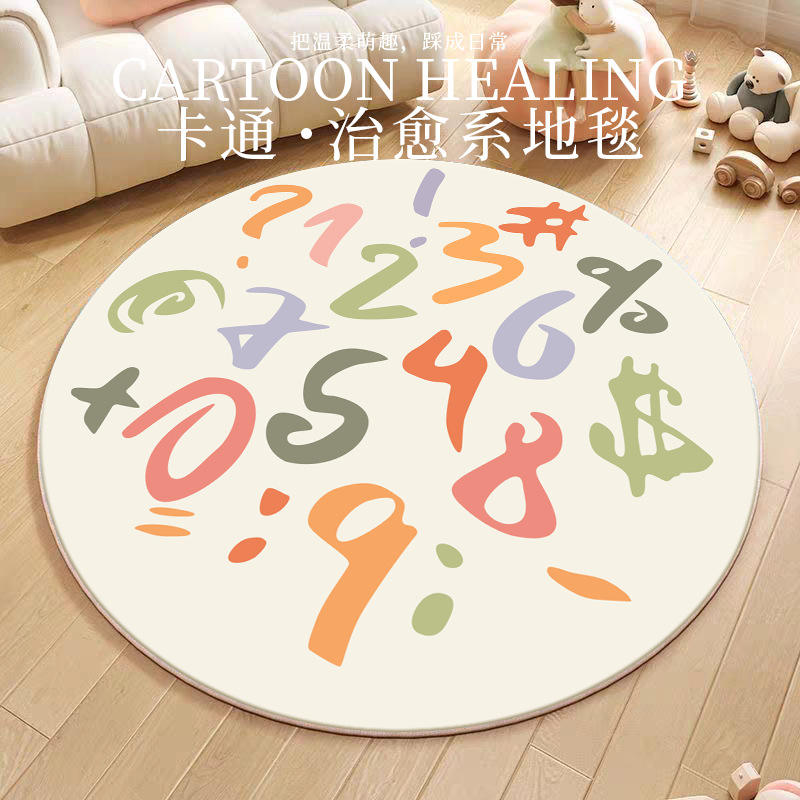 พรมปูพื้นเด็กทรงกลมลายการ์ตูน กันลื่น ดีไซน์ทันสมัย สำหรับห้องนอน พื้นที่เล่น ปลอดภัยสำหรับเด็ก ทำความสะอาดง่าย ซักน้ำได้