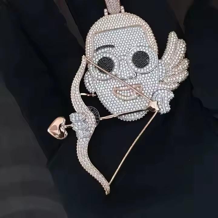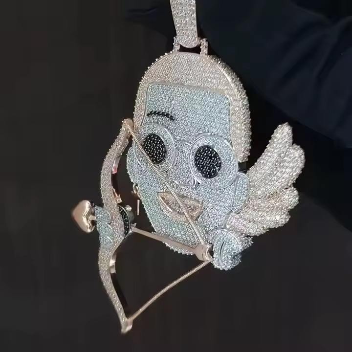 จี้รูปลูกศรนำโชคสไตล์ฮิปฮอปประดับเพชร CZ สีขาว รูปทรงการ์ตูน ทำจากเงินแท้ 925 สำหรับผู้ชาย
