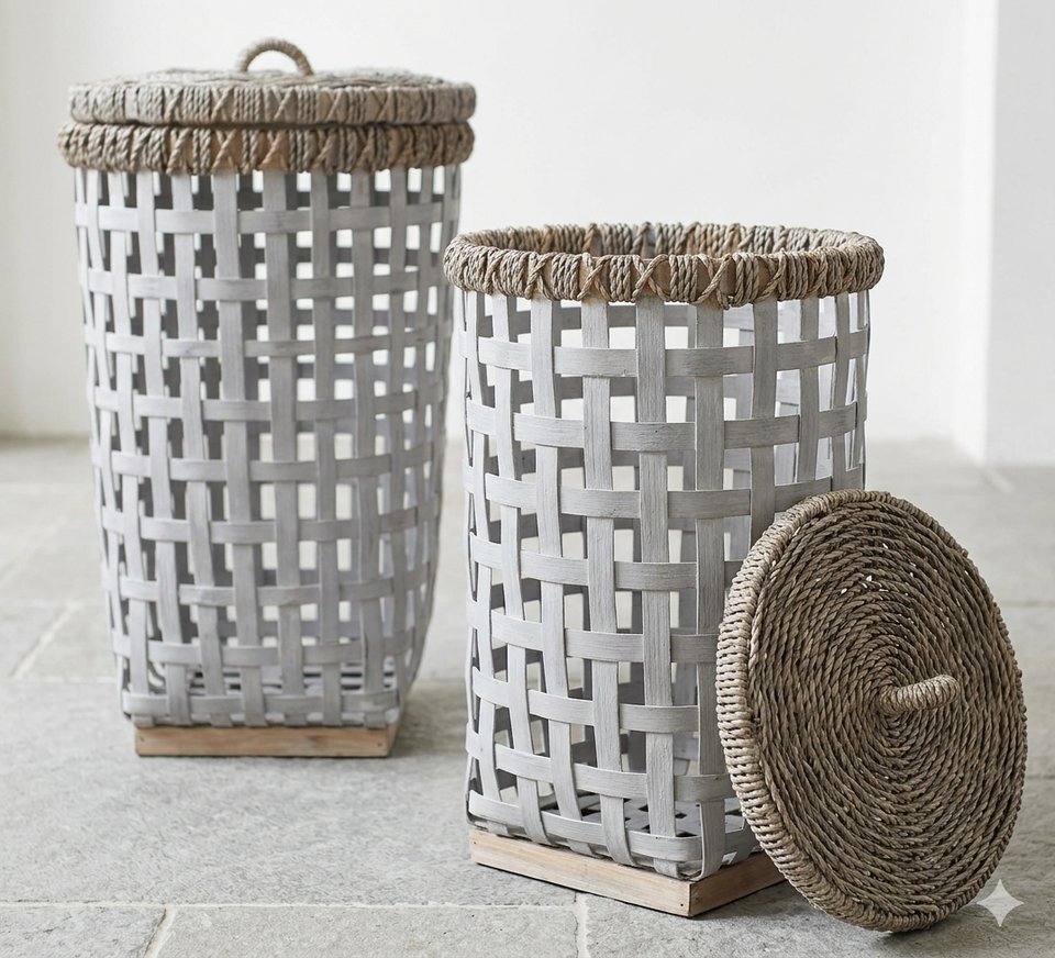 Handmade Bamboo Laundry Basket with Lid