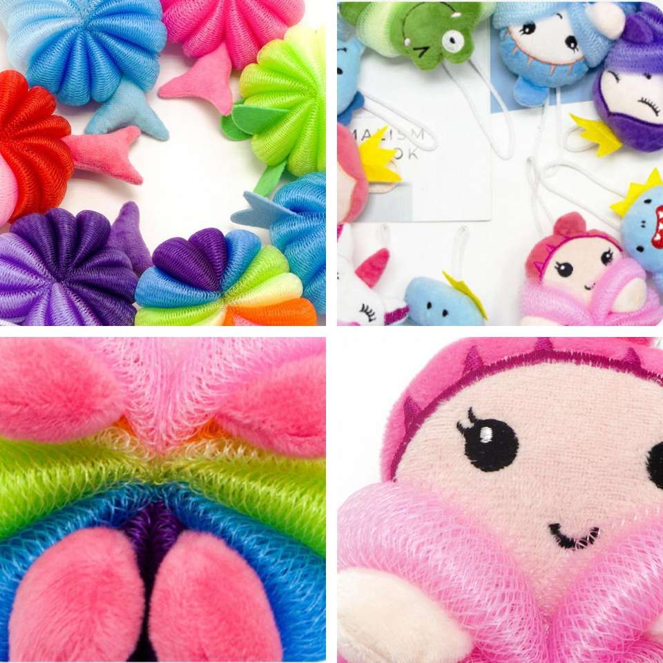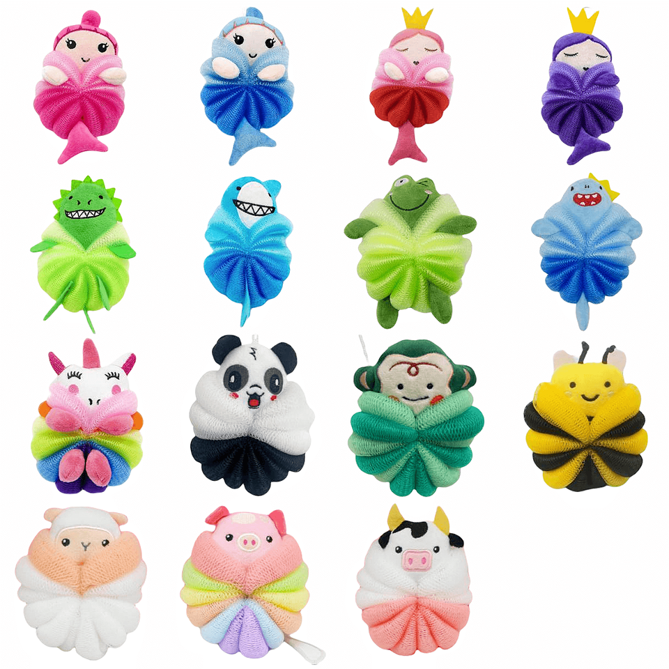 แปรงขัดตัวอาบน้ำลูกบอลฟองน้ำตาข่ายนิ่มลายการ์ตูนอุปกรณ์ห้องน้ำ