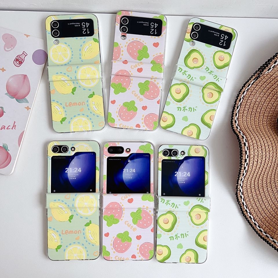 เคสสายรัดข้อมือลายการ์ตูนสตรอเบอร์รี่สำหรับ Samsung Z flip 7 6 5 4 3 Flip6 zflip มะนาวแข็งกันกระแทกฝาครอบแบบเกาหลี