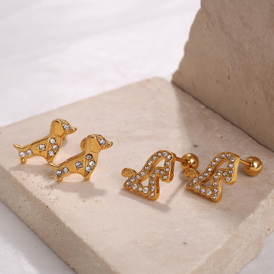ต่างหูการ์ตูนชุบทองประดับเพชรรูปแมวและหมี เครื่องประดับแฟชั่นสำหรับผู้หญิง