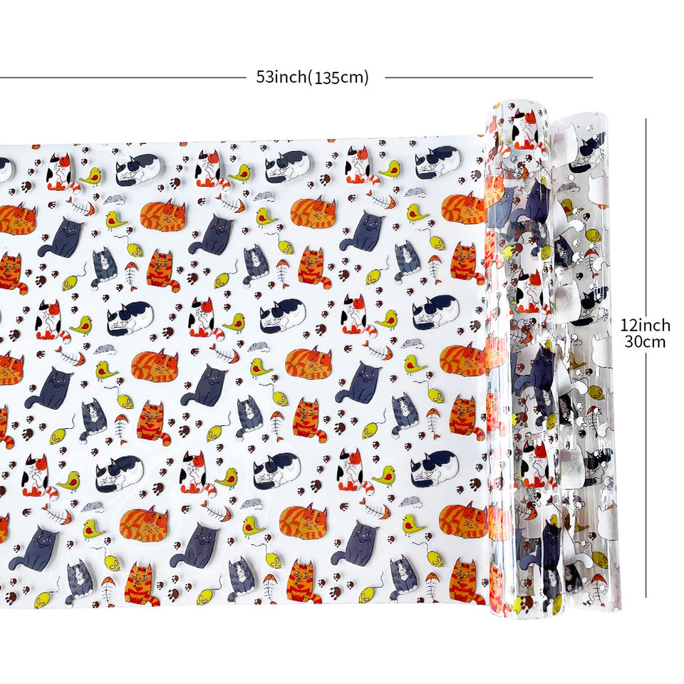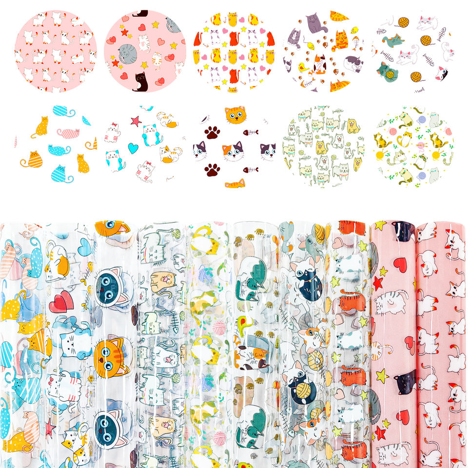Cartoon Theme Clear Plastic Vinyl Film Kitten Cats Pattern Printing PVC Transparent Synthetic Leather Waterproof Fabric for Bags