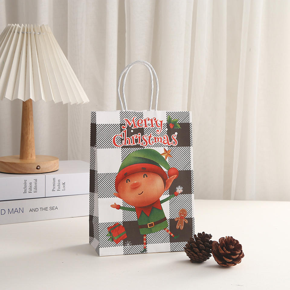 ถุงของขวัญกระดาษคราฟท์พิมพ์ลายการ์ตูนสโนว์แมนคริสต์มาสแบบขายส่ง กันน้ำ กันกระแทก กันฝุ่น สีและขนาดปรับแต่งได้