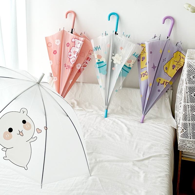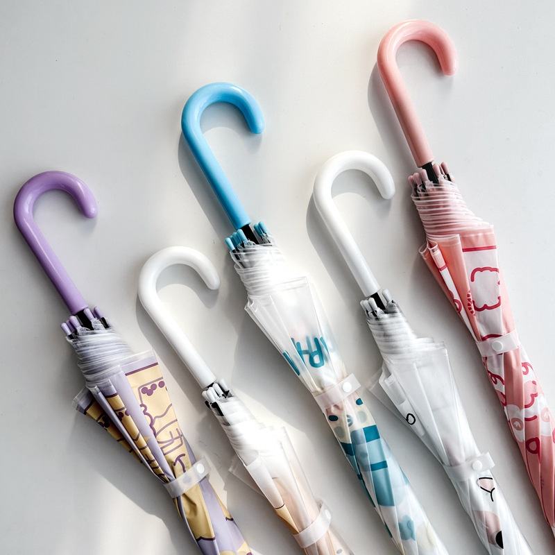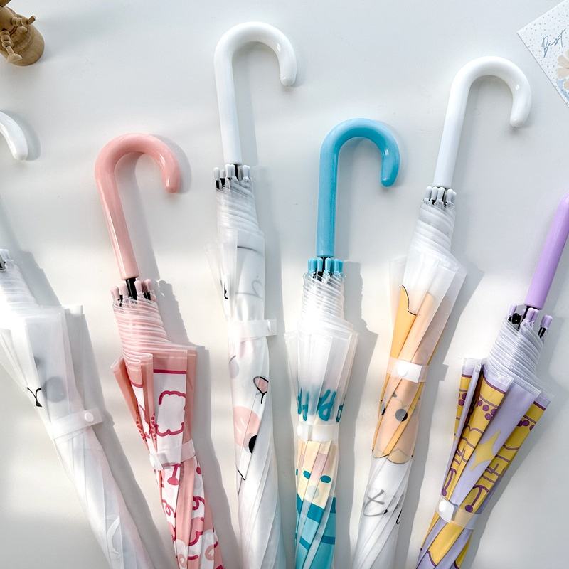 ร่มเด็กลายการ์ตูนใสจับตรงดีไซน์น่ารักสำหรับเด็กหญิงเด็กชายอนุบาลเด็กทารกประถมนักเรียน SL วันที่ฝนตก