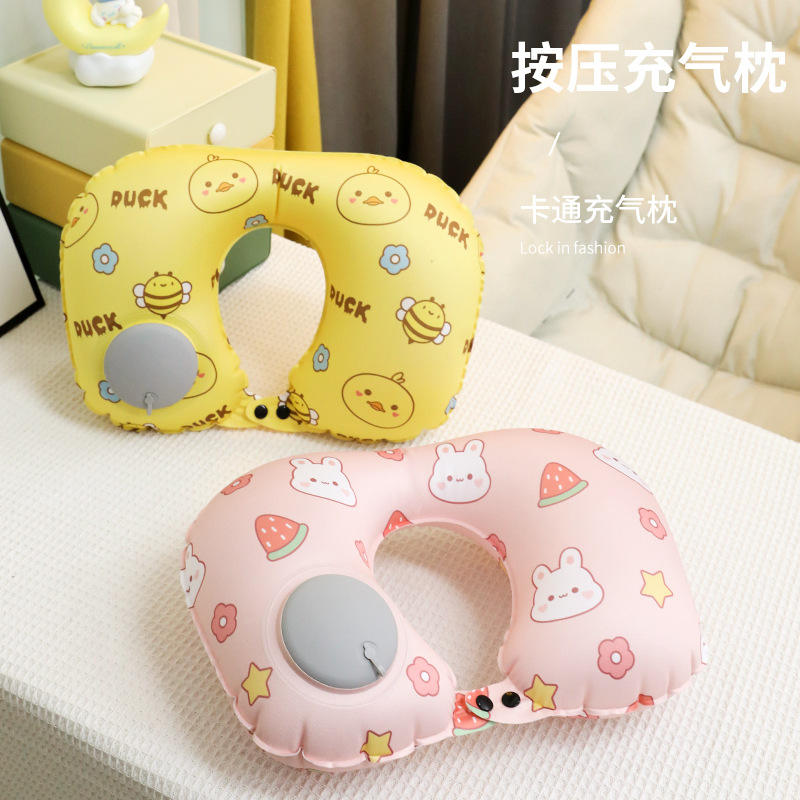 หมอนรองคอพกพาแบบเป่าลมรูปตัว U สำหรับการเดินทาง พร้อมฟังก์ชั่นทำความเย็น สำหรับใช้งานทั่วไป วัสดุโพลีเอสเตอร์