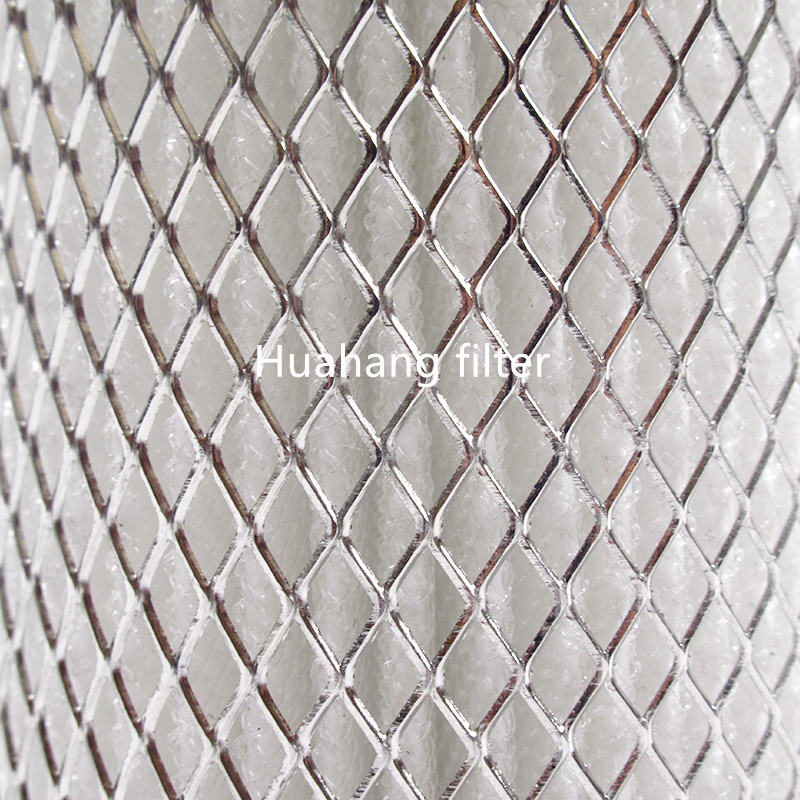 ไส้กรองอากาศแบบตาข่ายเผาผนึกชนิดมีหน้าแปลนพร้อมผ้าไมโครไฟเบอร์