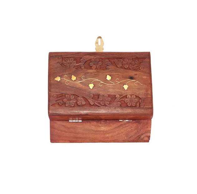 กล่องใส่เครื่องประดับไม้กระถินแกะสลักสำหรับของขวัญและเครื่องมือ งานแฮนด์เมดสไตล์โบฮีเมียน ผลิตโดยผู้ผลิตชาวอินเดีย