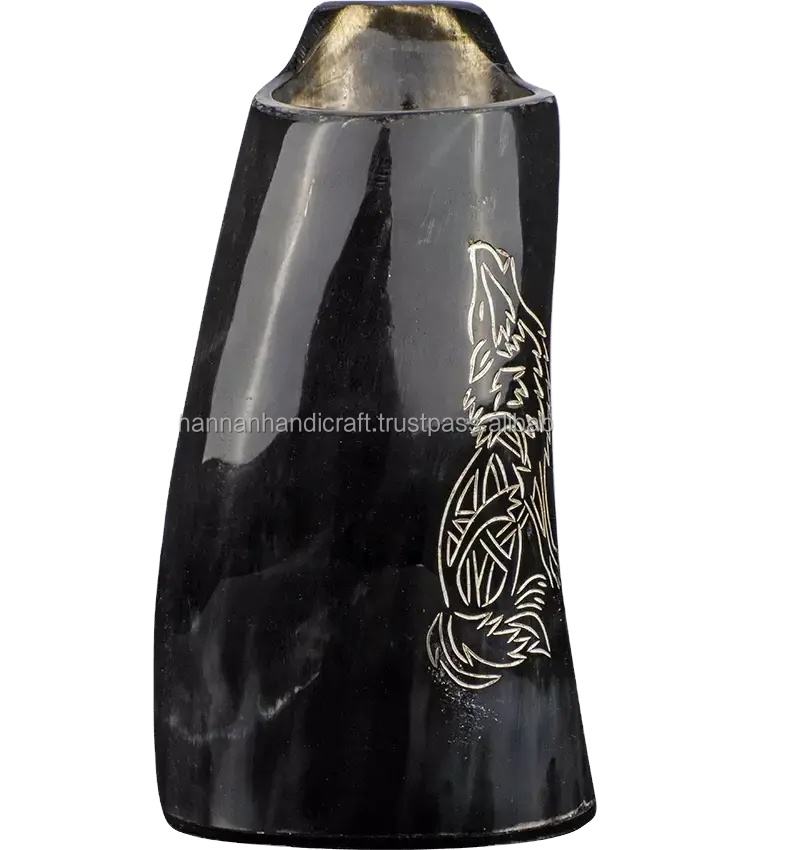 แก้วมักสำหรับดื่มเบียร์โบราณโบราณโบราณทำจากเขาเขาควายธรรมชาติแกะสลักแก้วดื่มไวน์เบียร์โบราณ