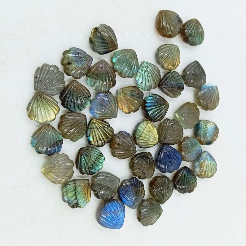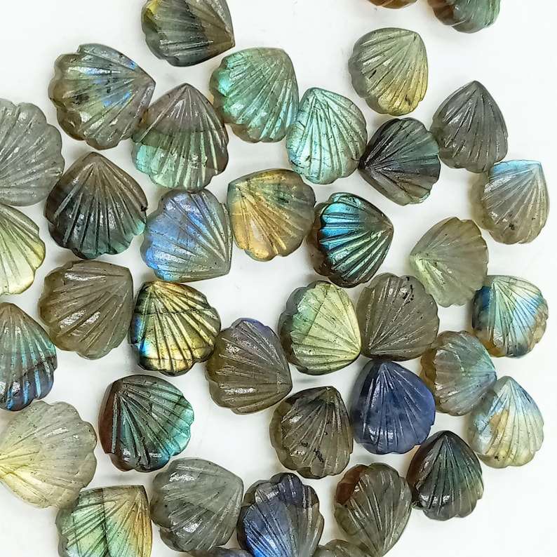 ลูกปัดหินลาบราดอไรต์แกะสลักจากเปลือกหอย สำหรับทำเครื่องประดับ ขายส่งจากผู้ผลิตโดยตรง หินธรรมชาติ