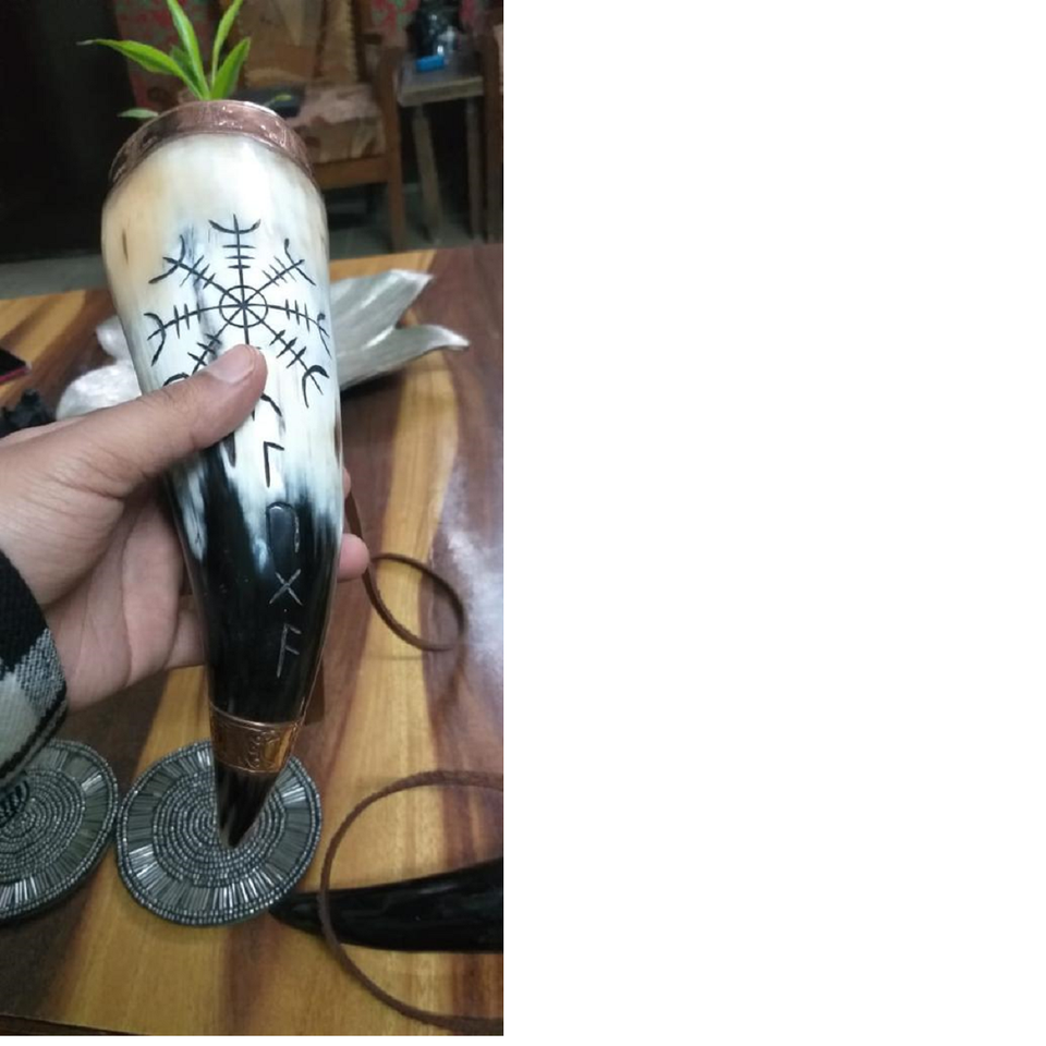 เขาสัตว์แกะสลักสำหรับดื่มน้ำ ลายสลักธีมไวกิ้งและนอร์ดิก ดีไซน์เสริมฮวงจุ้ย สำหรับตกแต่งบ้านและเป็นของขวัญในเทศกาล