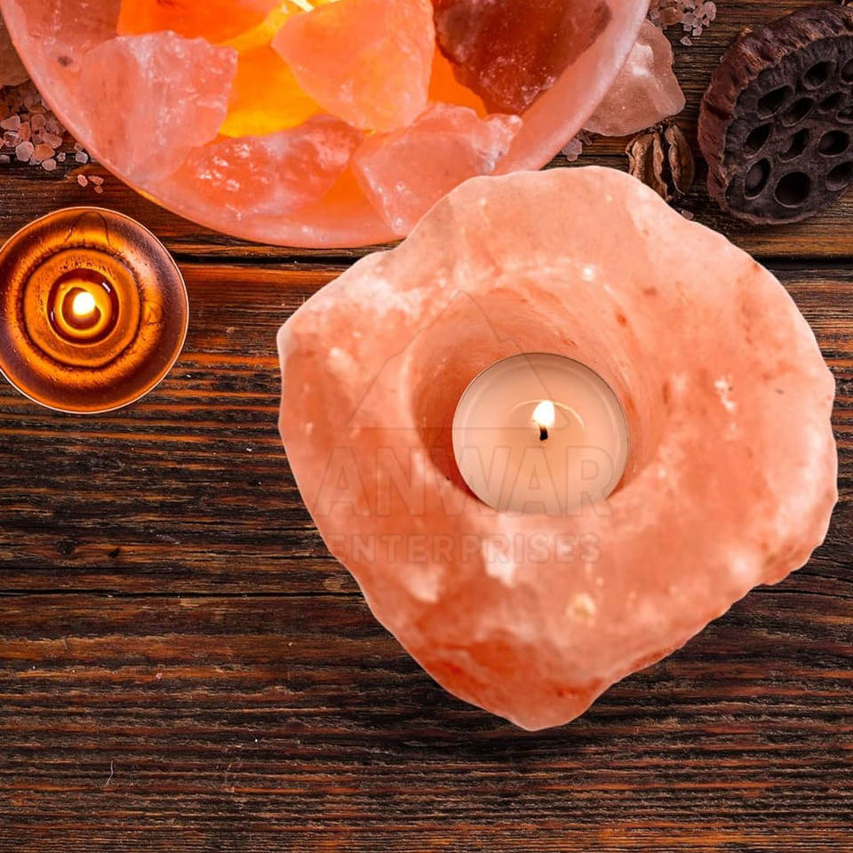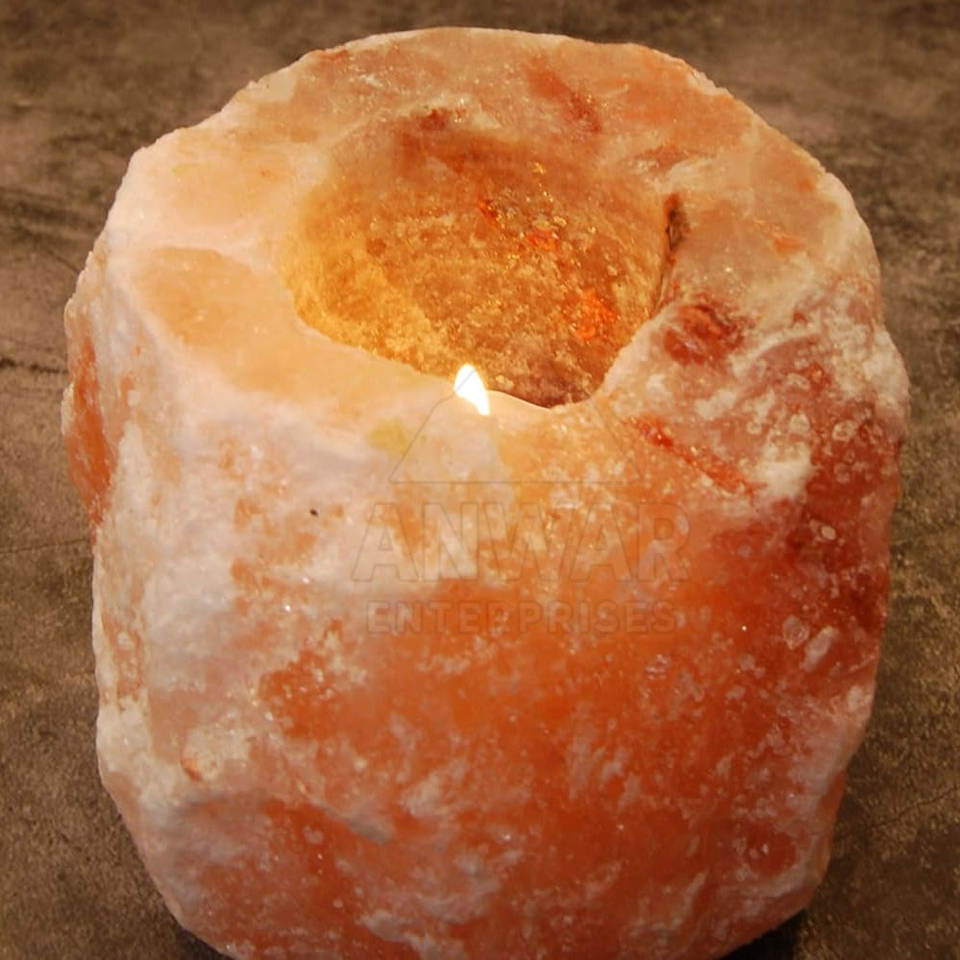 โคมไฟเกลือสีชมพูทรงกลมแกะสลักจากวัสดุธรรมชาติ ด้วยเทคนิคที่เป็นมิตรกับสิ่งแวดล้อม สไตล์โบราณ พร้อมที่วางเทียนสุดหรู