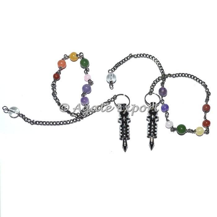 ลูกตุ้มโลหะสีดำแกะสลักขนาดเล็กพร้อมโซ่จักระ: ลูกตุ้มโลหะสีดำทั้งหมดและผู้ส่งออกหินกึ่งมีค่า