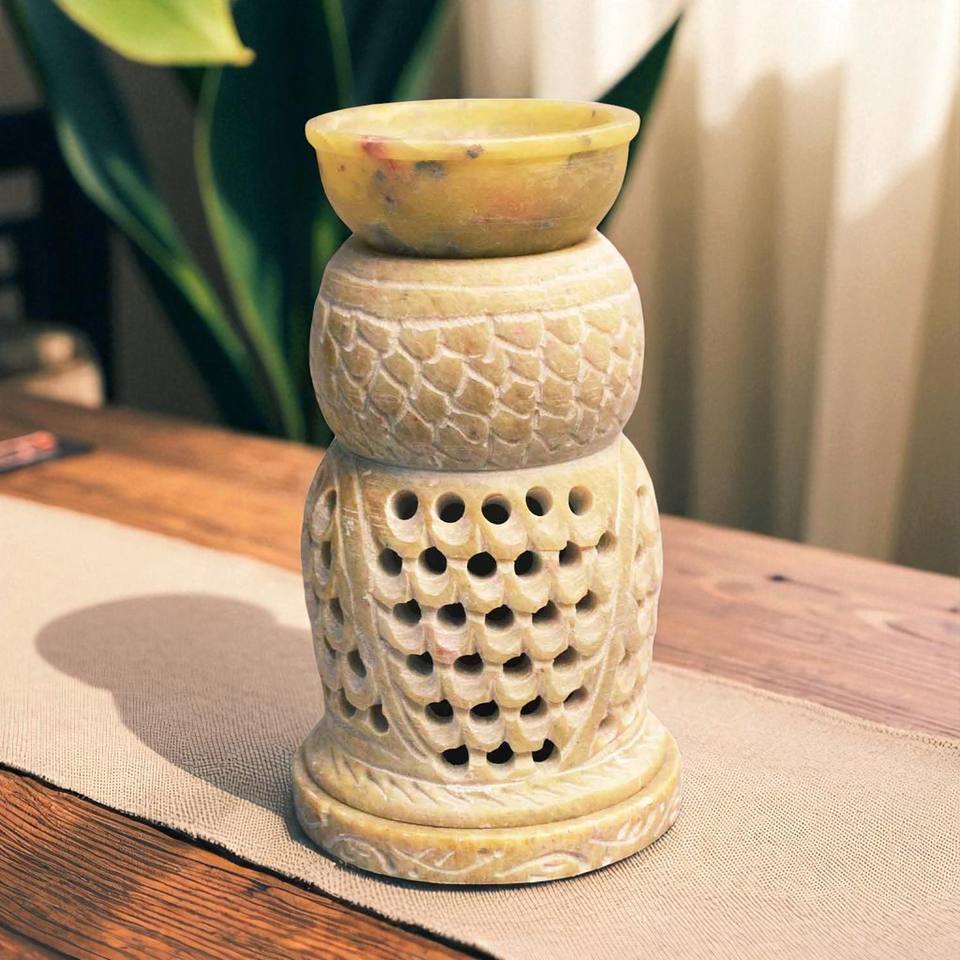 แผ่นกระจายน้ำมันหอมระเหยรูปนกฮูกแกะสลักพร้อมเตาน้ำมันหอมระเหยและเทียนสำหรับตกแต่งเพื่อความผ่อนคลาย