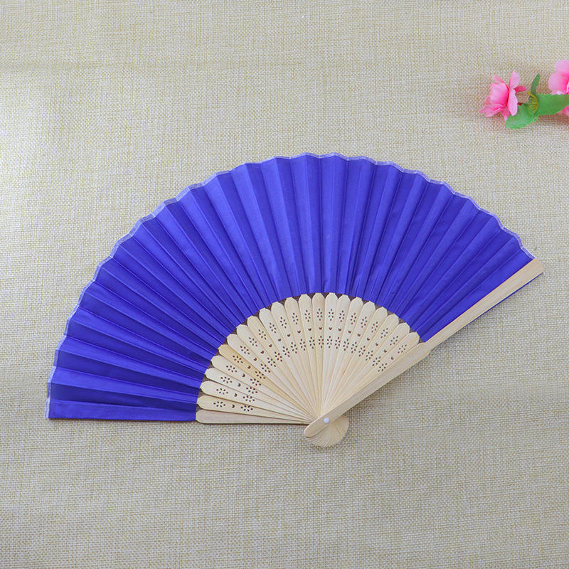 พัดลมมือถือทำจากไม้ไผ่ทำจากผ้าไหมแกะสลักสำหรับงานแต่งงานพัดไม้ไผ่แบบพับได้พัดมือปรับสีได้ตามต้องการ