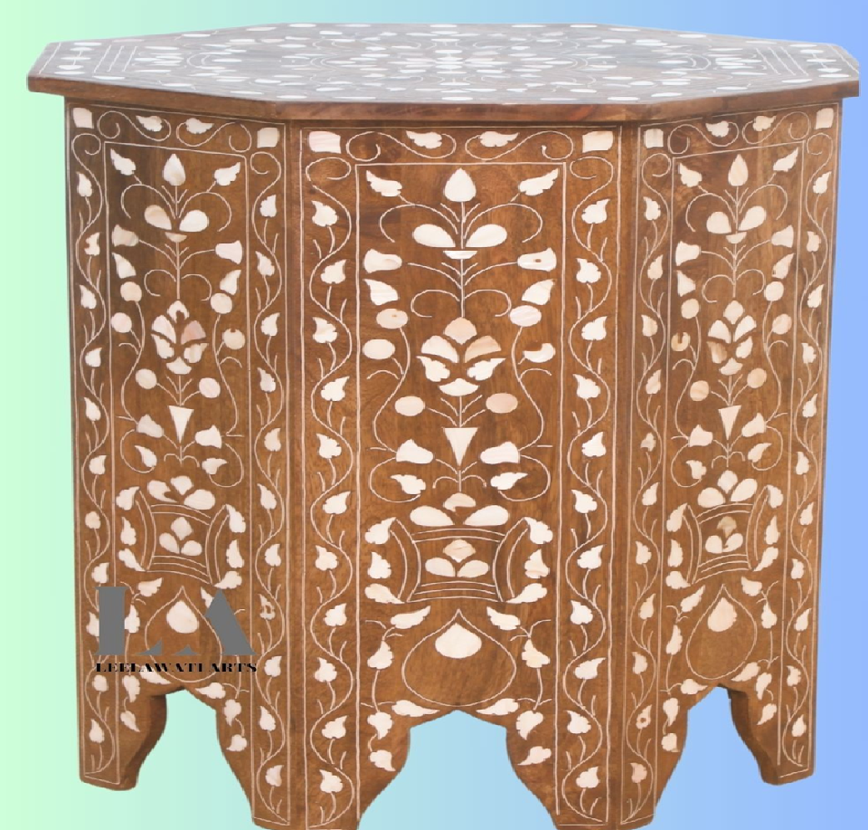 โต๊ะฐานแกะสลักฝังกระดูกมีลวดลายฉลุสีขาวอย่างประณีต ให้ลุคหรูหราสำหรับตกแต่งภายใน จำหน่ายในราคาขายส่ง