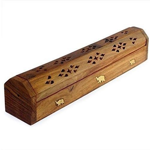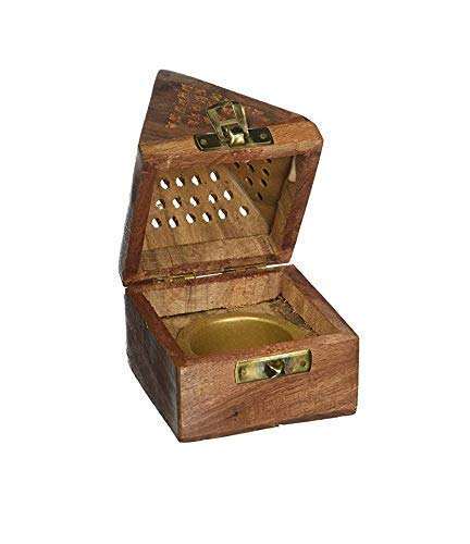 ที่วางธูปไม้จันทน์แกะสลักลายศิลป์ศาสนา พร้อมกล่องทรงปิรามิดและฐานวางกลิ่นหอมผลไม้ตระกูลส้ม