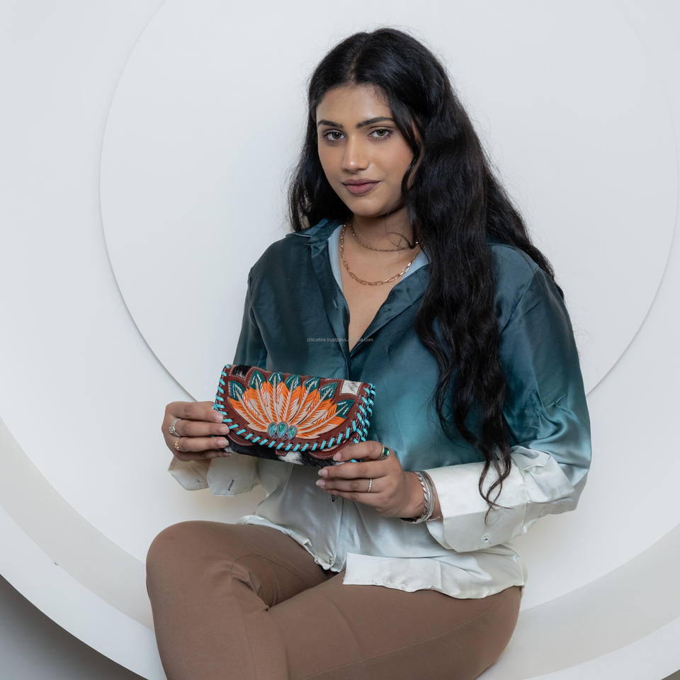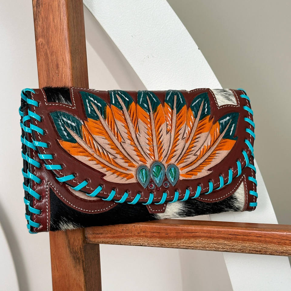 เคสหนังวัวแกะสลักเคสโทรศัพท์กระเป๋าคลัทช์ใส่บัตรแบบมือกระเป๋าสตางค์แบบตะวันตกที่ทันสมัย