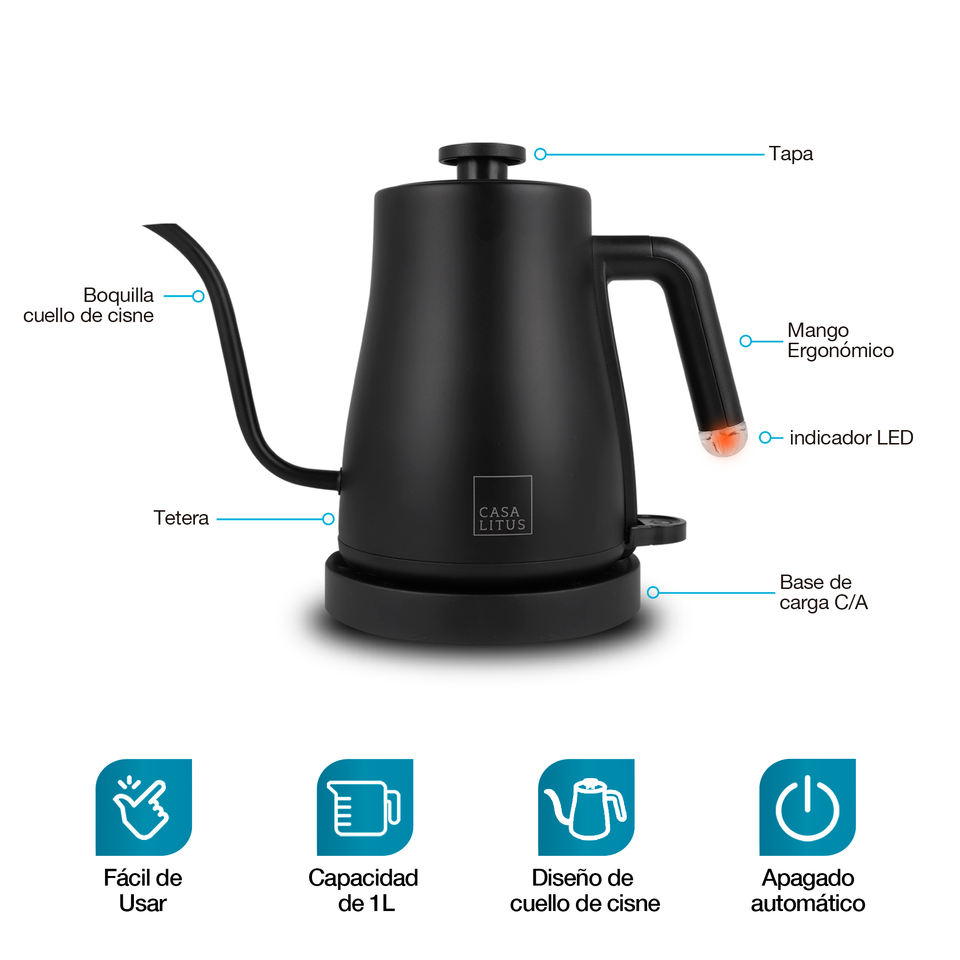 Casa Litus 1 Liter Stainless Steel Gooseneck Electric Kettle