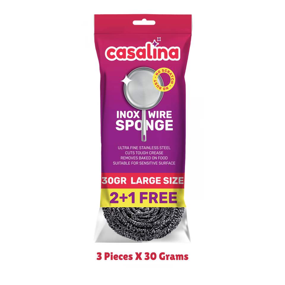 Casalina INOX ที่ขัดสเตนเลสขนาดใหญ่พิเศษอุปกรณ์ขัดบัตรแบบเกลียวสำหรับทำความสะอาด3x30g ในครัว