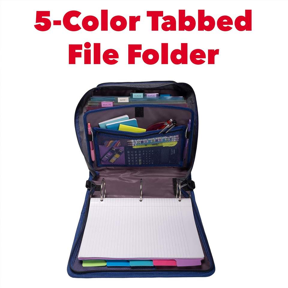 แฟ้มซิป Case-it Mighty Zip Tab, แบบ O-Ring ขนาด 3 นิ้ว พร้อมแท็บ 5 สี, แฟ้มแบบขยายได้ พร้อมสายสะพายและหูหิ้ว