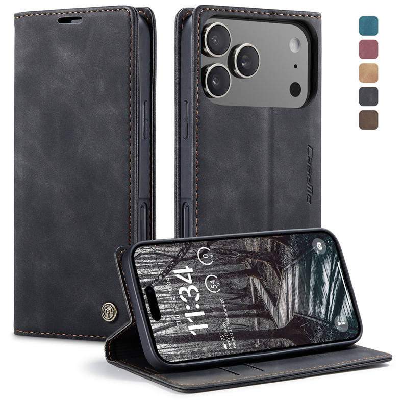 Caseme 013เคสกระเป๋าเงินหนังฝาพับสุดหรูมีขาตั้งแบบแม่เหล็กสำหรับ iPhone 17 Pro