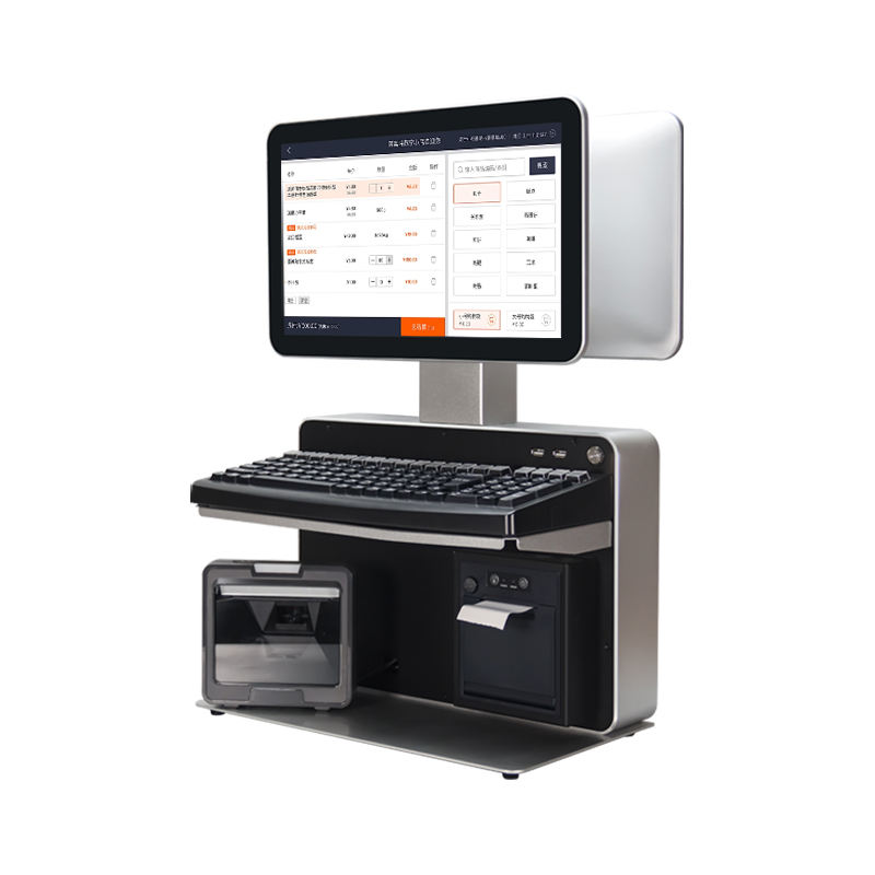 เครื่องเก็บเงินสดขนาด15.6นิ้วระบบ POS สองหน้าจอระบบสัมผัสแบบ WIN-dows พร้อมแป้นพิมพ์เครื่องพิมพ์สแกนเนอร์