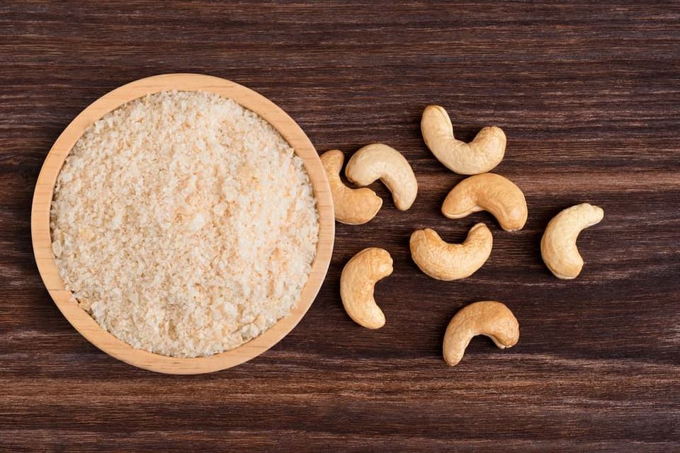 เม็ดมะม่วงหิมพานต์ที่จำเป็นสำหรับอาหารที่อุดมไปด้วยสารอาหารสำหรับปลาสุนัขหมูแกะม้าแพะบรรจุในถุง
