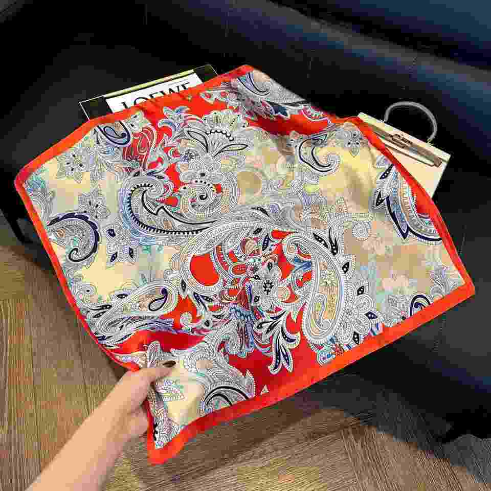 [ซีรีย์มะม่วงหิมพานต์] ผ้าพันคอผืนเล็กสำหรับพนักงานต้อนรับบนผ้าไหมทรงสี่เหลี่ยมสวยงามและพิมพ์ลาย