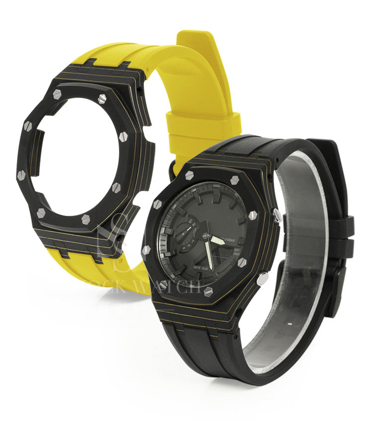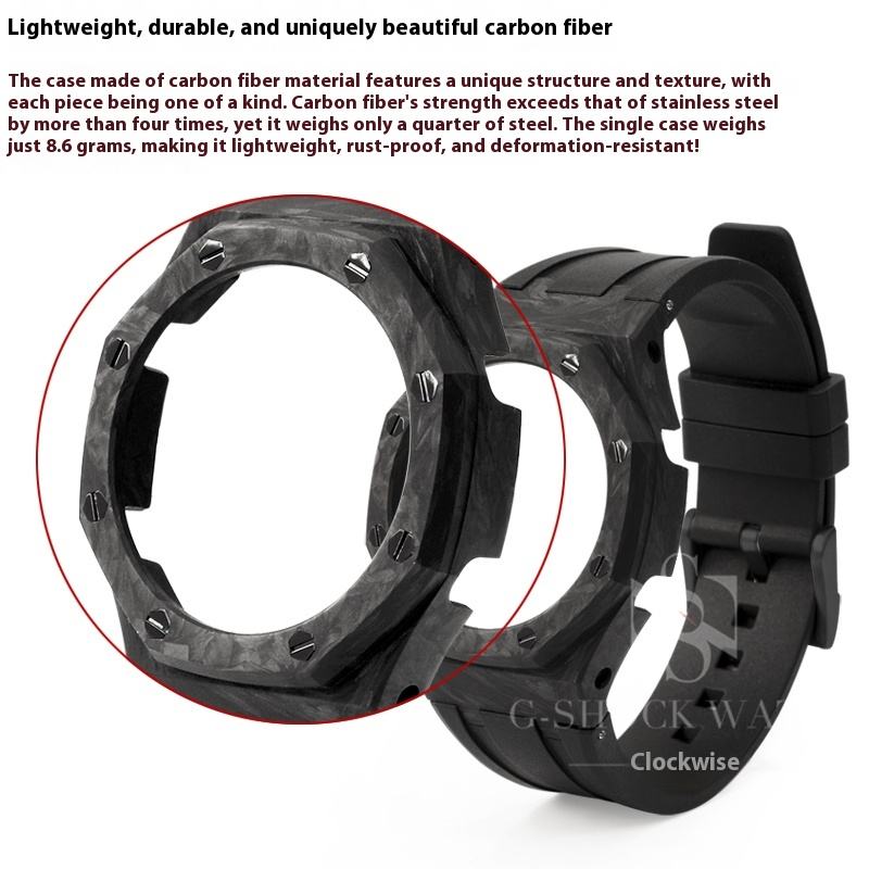 ชุดแต่งนาฬิกา CasiOak Premium Meteorite Carbon Fiber Sports Mod Kit สำหรับรุ่น GA-2100/B2100/GM2100 สายยางฟลูออรีนขนาด 22 มม. พร้อมหัวเข็มขัดโลหะและจี้โลหะ