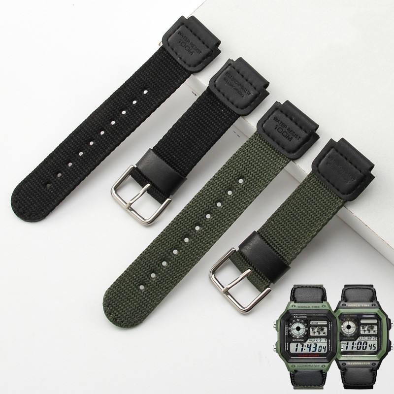 Casio สายนาฬิกาผ้าใบไนลอนระบายอากาศ18มม. สายรัดข้อมือของผู้ชายสำหรับ G SHOCK AE-1200WH/SGW-300/AQ-S810W