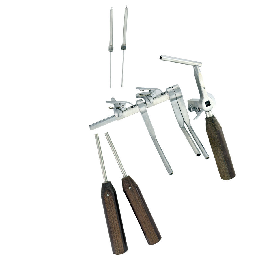 ชุดเครื่องมือผ่าตัดผ่านกล้องทางหู คอ จมูก แบบใช้แรงดันด้วยมือ ยี่ห้อ Caspar พร้อมสกรูและหมุด ทำจากสแตนเลส ได้รับการรับรองมาตรฐาน CE