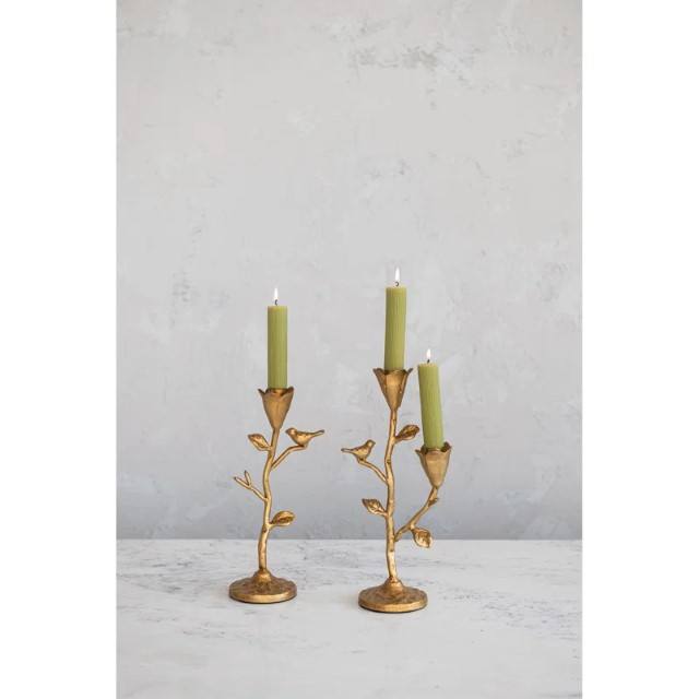 Cast Aluminium Candelabra with Flowers and Bird or Magnolia Bloom Hand Forged Cast Aluminium Candle holder