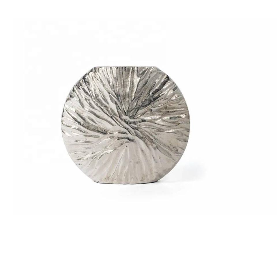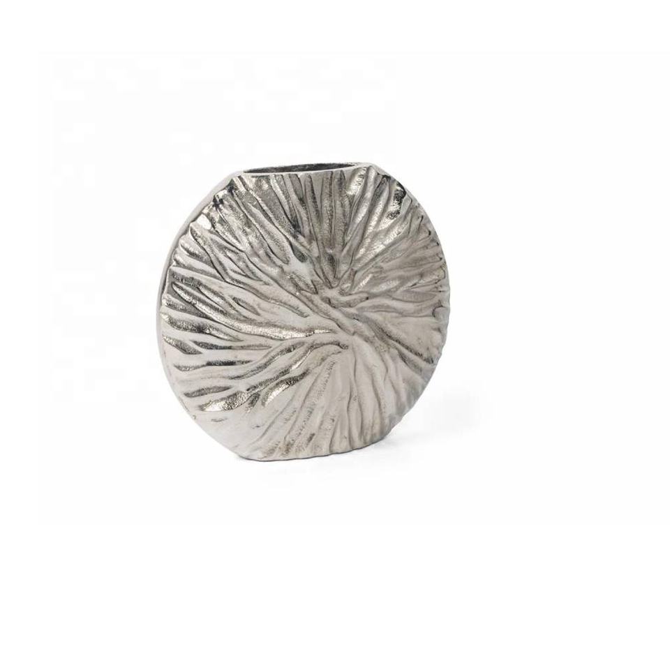 แจกันดอกไม้อลูมิเนียมหล่อแจกันโลหะทรงกลมตกแต่งโต๊ะทันสมัยสำหรับห้องนั่งเล่น