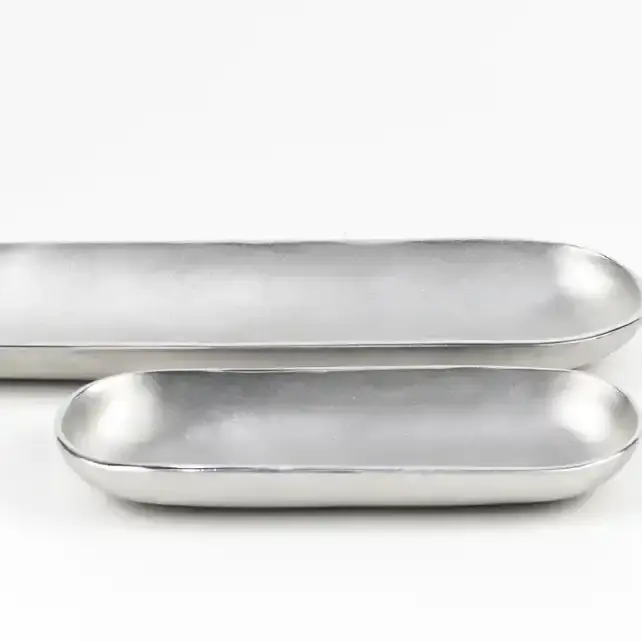 อลูมิเนียมหล่อถาดเสิร์ฟสําหรับบ้านโรงแรมงานแต่งงานถาดจานโมเดิร์นโลหะ Handle สี่เหลี่ยมออกแบบถาด