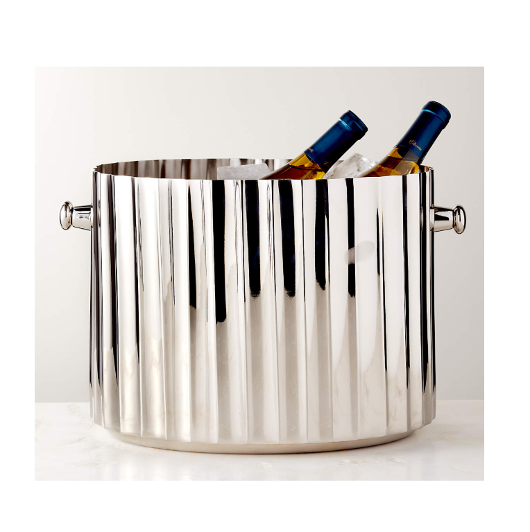 ถังเครื่องดื่มสำเร็จรูปอลูมิเนียมสีเงินพร้อมที่จับสำหรับจัดแสดงเคาน์เตอร์ถังแช่ไวน์โลหะ-แชมเปญเบียร์น้ำแข็งออกแบบโลโก้ได้ตามต้องการ