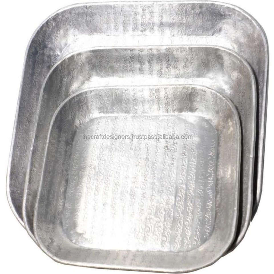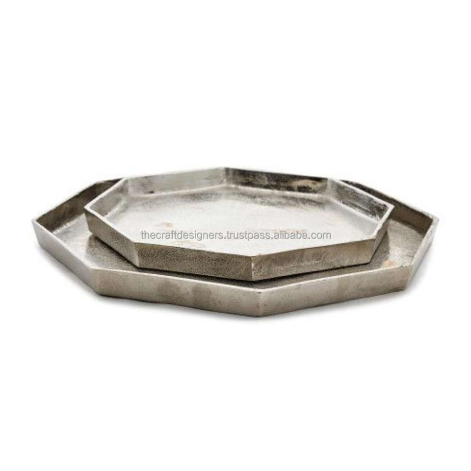 ชุดถาดอลูมิเนียมหล่อสำหรับตกแต่งทรงแปดเหลี่ยมถาดเสิร์ฟโลหะ8ด้านถาดเงินตกแต่งในข้อเสนอพิเศษ