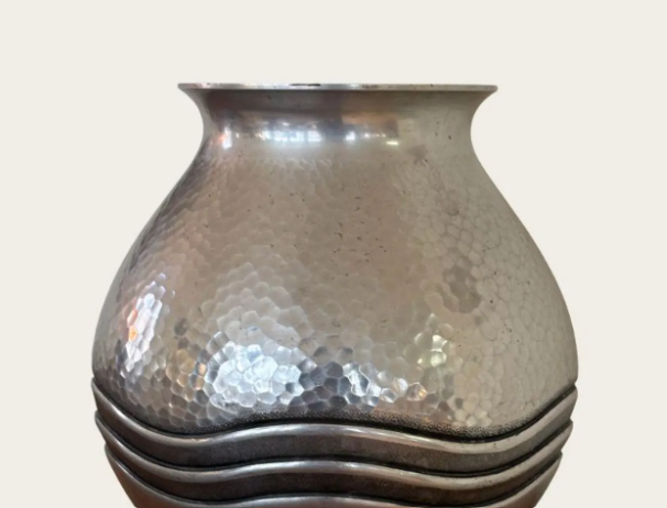 แจกันดอกไม้ทรงกลม ดีไซน์โดดเด่น ผลิตจากอะลูมิเนียมหล่อ ตกแต่งภายในบ้าน สำนักงาน และโรงแรม ด้วยการเคลือบเงิน ให้ความรู้สึกหรูหรา