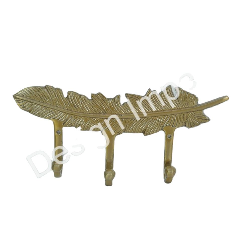 ตะขอตกแต่งทองเหลืองพร้อมที่จับ3อันตะขอขนนกหรูหรางานหัตถกรรมโลหะตะขอแฮร์รี่โลหะสินค้าสำหรับตกแต่งบ้าน