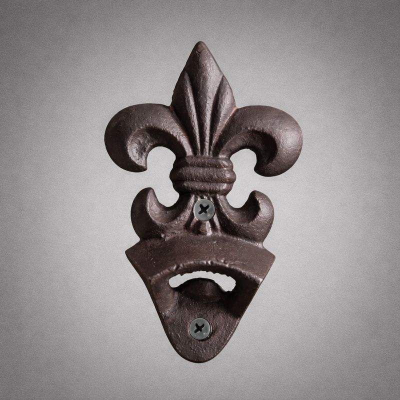 ที่เปิดขวดติดผนังลายดอกเฟลอร์เดอลิส ทำจากเหล็กหล่อ ดีไซน์วินเทจแบบชนบท แข็งแรง ทนทาน เหมาะสำหรับตกแต่งบาร์ ครัว คาเฟ่