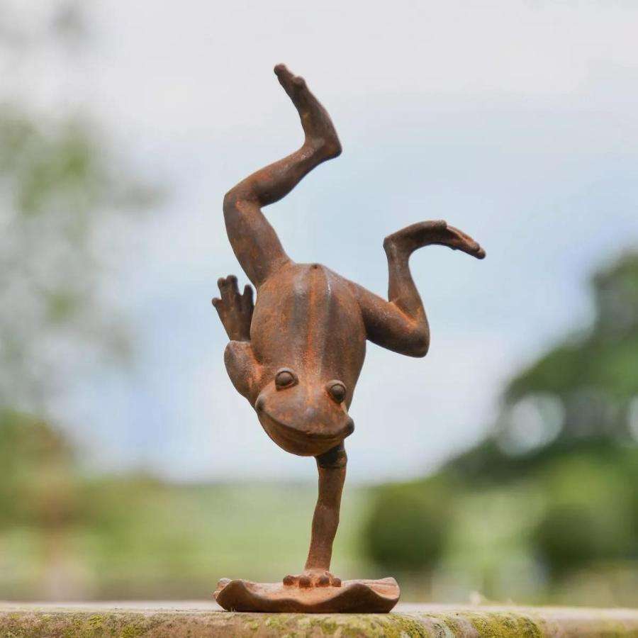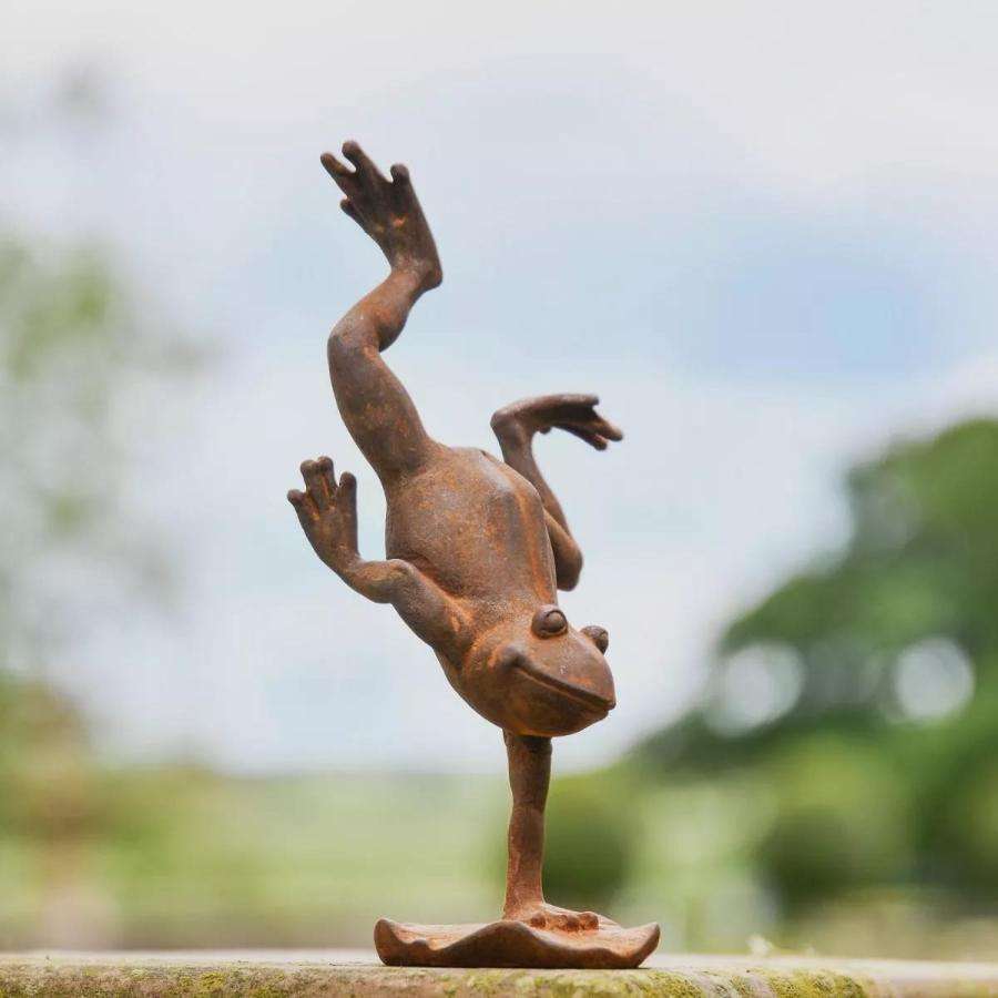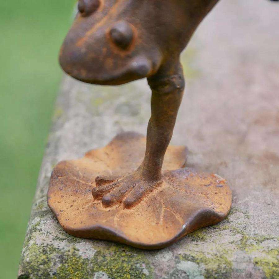รูปปั้นกบเหล็กหล่อพร้อมฐาน ตกแต่งด้วยการขัดสนิมสไตล์โบราณ ของตกแต่งสวน