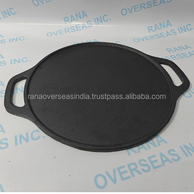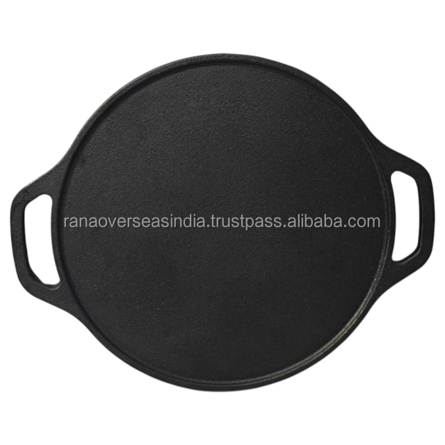 กระทะเหล็กหล่อแบบแบนสำหรับทำโดซา ทาวา แบบหนา ทนทาน ปรุงรสไว้ล่วงหน้า สำหรับทำพิซซ่า โรตี จาปาตี แพนเค้ก เครป อุปกรณ์ทำอาหารในครัว