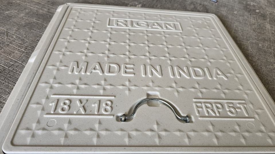 ฝาปิดท่อระบายน้ำ FRP สีเทา ขนาด 21x21 ซม. แบบมีบานพับ ผิวกันลื่น กันน้ำ เป็นมิตรกับสิ่งแวดล้อม เพื่อความปลอดภัย